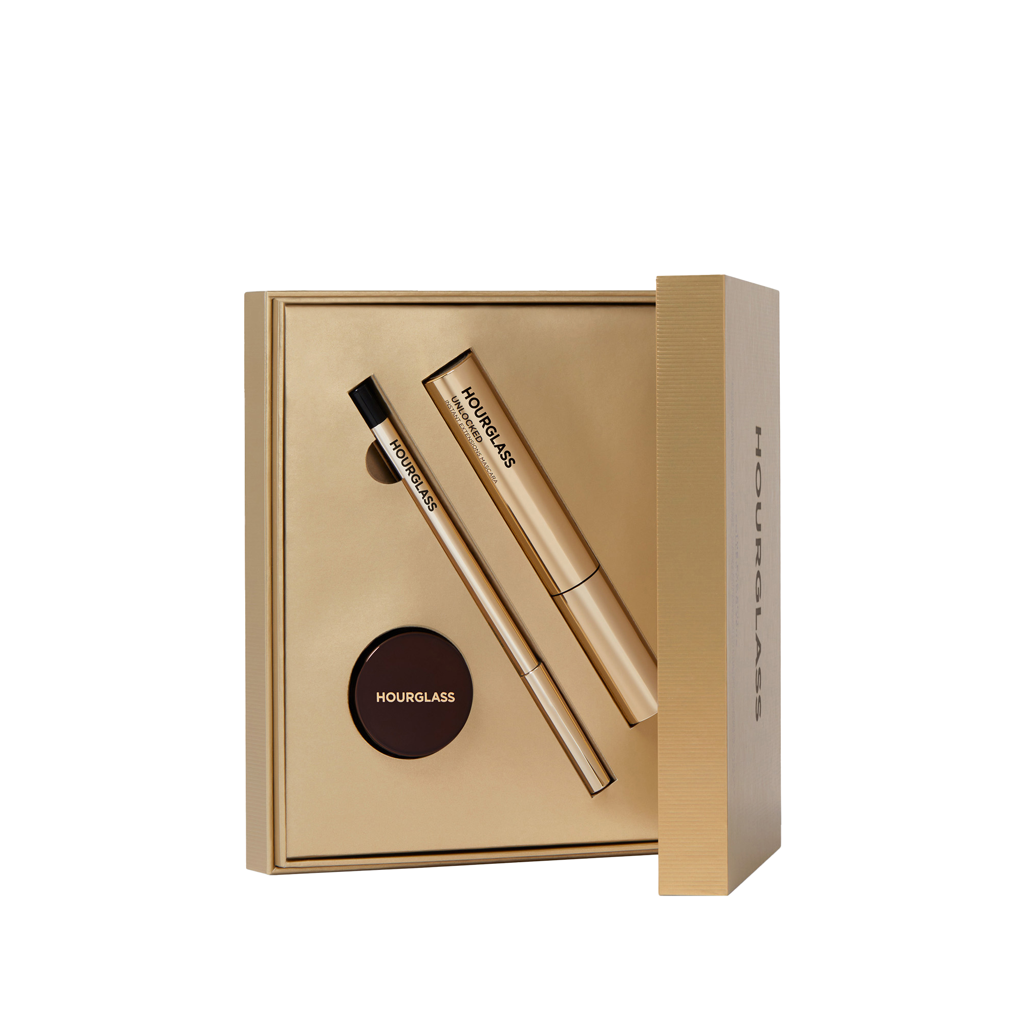 A limited-edition set featuring three full-size essentials for a holiday-ready eye look. Create the ultimate holiday eye look with this high-impact trio. featuring three full-size versions of our bestselling eye formulas: Voyeur Waterproof Gel Eyeliner in Obsidian – a true black. Scattered Light Glitter Eyeshadow in Reflect – a true champagne. and Unlocked Instant Extensions Mascara.?